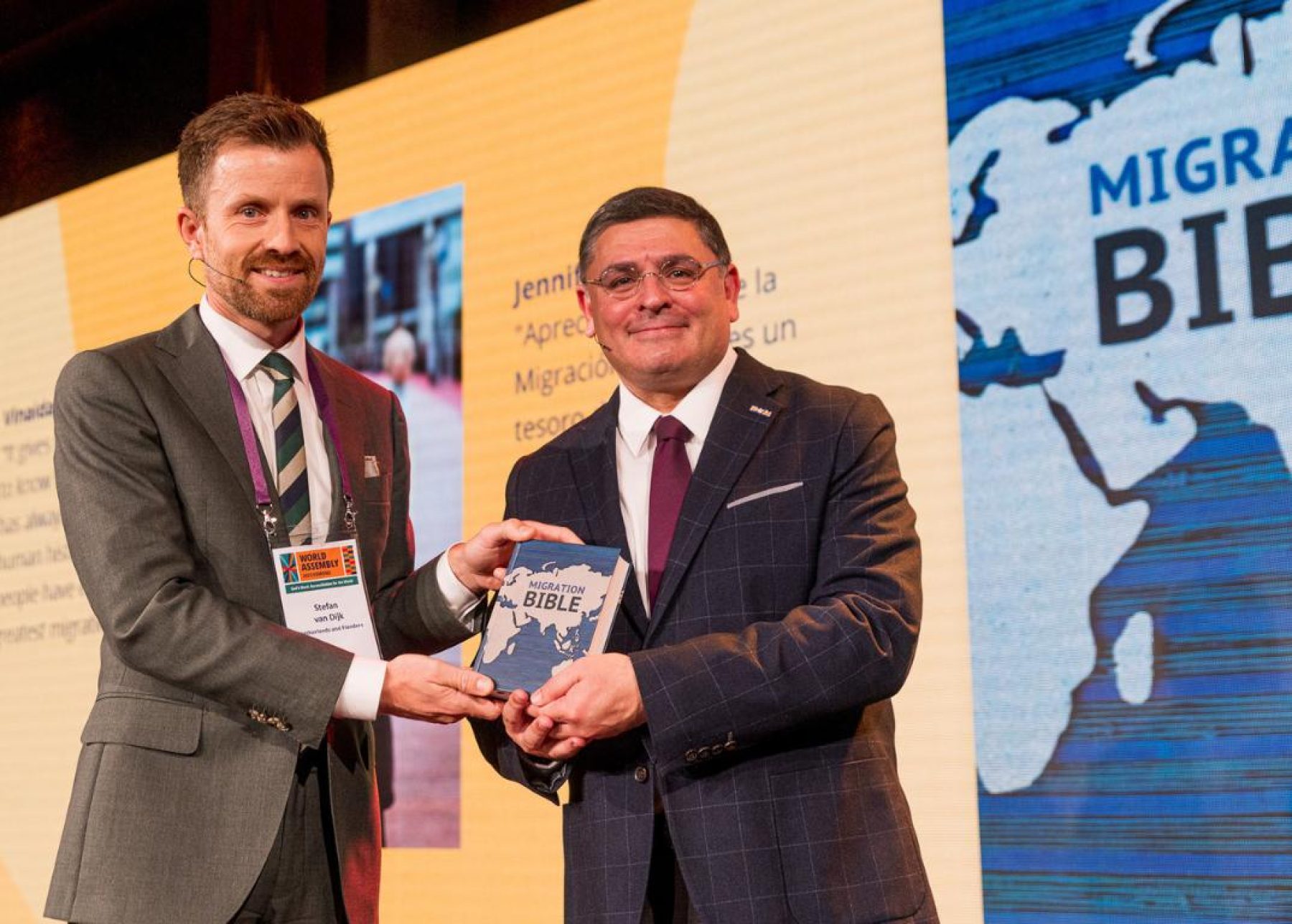 The presentation of the Migration Bible took place during the UBS World Assembly in Egmond aan Zee. “The Bible is full of stories about migration,” BSNF General Secretary Rieuwerd Buitenwerf says on the occasion. “Just think of the story of Ruth and Naomi, or the calling of Abraham. It is also a theme in the Bible that all Christians are described as migrants. After all, they are – says 1 Peter 2:11 – strangers in this world. This Bible release is very relevant, especially now that migration is a hotly debated topic. That is why we highlight what the Bible says about it in this issue.”