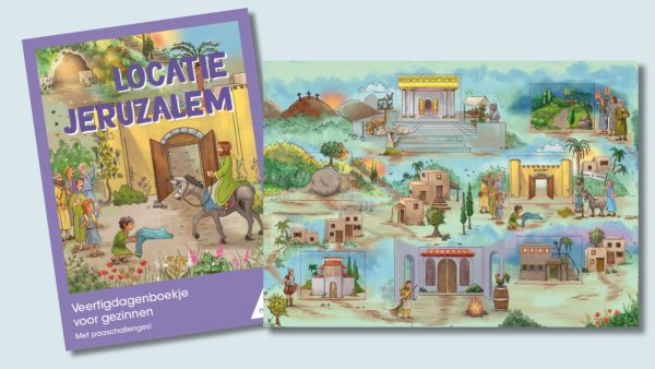 ‘Het paasproject Locatie Jeruzalem neemt kinderen mee met Jezus op weg naar Pasen’, aldus Anne-Mareike Schol-Wetter. ‘Ze volgen Jezus die op een ezel in Jeruzalem aankomt. Ze horen hoe Jezus van de tempel weer Gods huis maakt, ze maken het verraad van Petrus mee en beleven zo nog vier Bijbelverhalen tot en met de opstanding.’