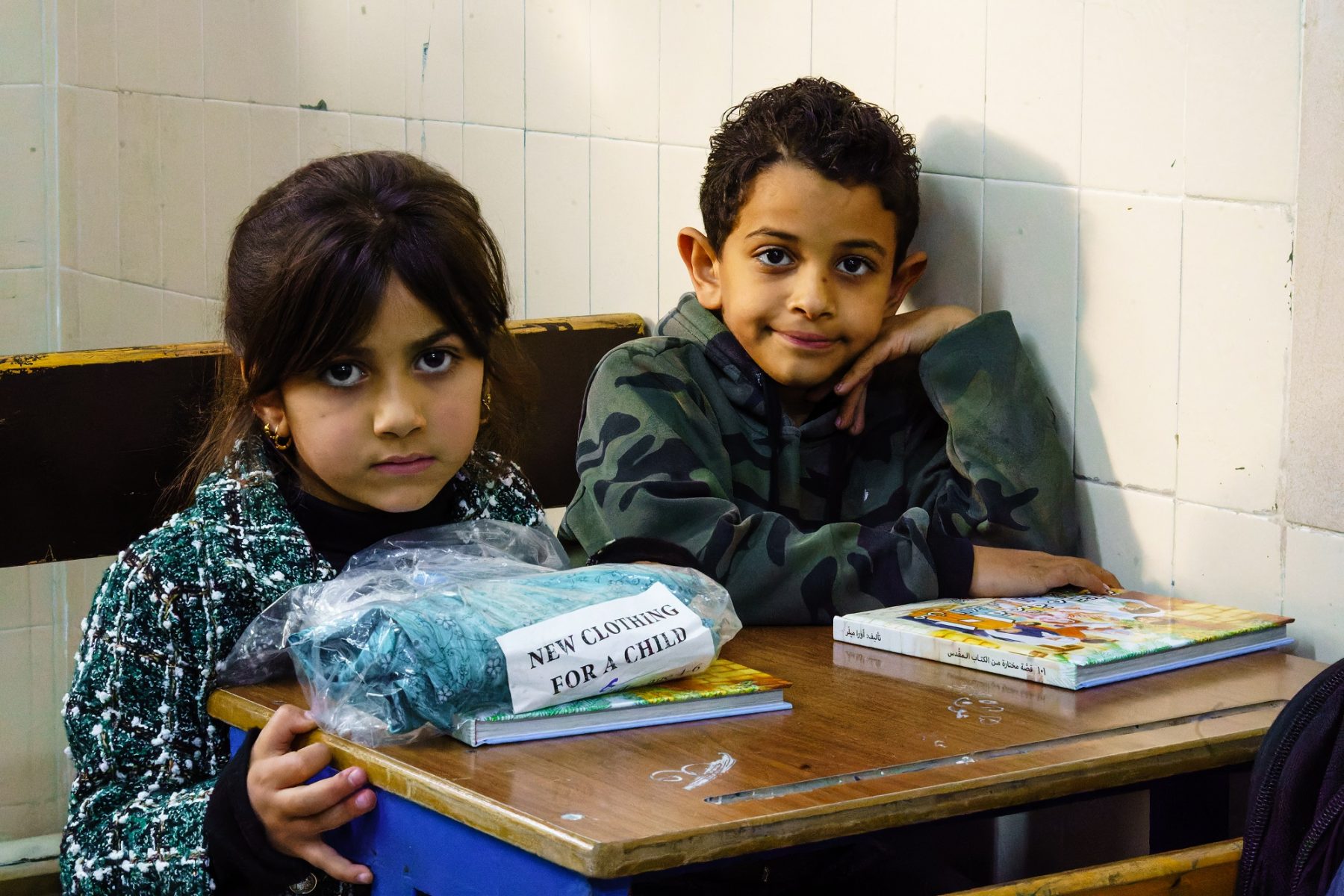 De kinderen op de foto komen uit Irak. Ze zijn met hun familie gevlucht omdat ze christen zijn. Ze zijn in Jordanië terechtgekomen, daar wonen ze in een voorstad van de hoofdstad Amman. Hun ouders zitten veel thuis. Zij wachten tot ze legaal mogen werken in Jordanië, dan kunnen ze misschien een nieuw leven opbouwen. Maar zo ver is het nu nog niet. Nu leven de families in onzekerheid over hun toekomst. Ze zijn afhankelijk van de besluiten van de regering en van hulporganisaties.